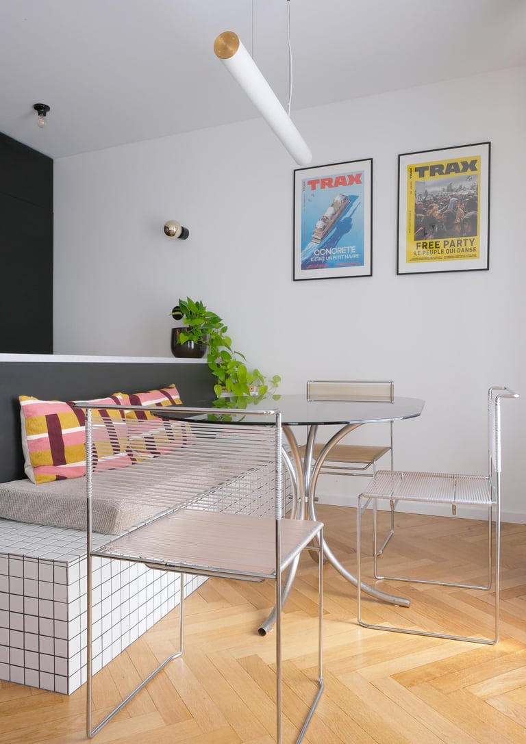 Marion et Romain, jeunes parents hyperactifs, mènent des carrières intenses tout en télétravaillant la moitié du temps. Leur appartement doit être ultra flexible : un espace pro en semaine, qui leur permet d’être productifs, et un refuge cosy le soir et le week-end, où ils peuvent enfin décrocher. Ils cherchent à créer un intérieur qui s’aligne avec leur vie à 100 à l’heure tout en offrant une bulle de calme pour se poser en famille.
